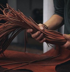 卷套缨子不需要上好的皮革,一般用牛肚上的皮。先用皮革卷上马鬃或棕树皮,卷成一个卷子后,用钩针引着细皮线缝合。卷好后将两头用皮线牢牢地扎紧,形成一个椭圆的圈子,再剪两片圆圆的皮革将两头的口子缝合,就是一个完整的套缨子。